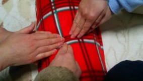 カーディガンを着てたので、始めの胃の位置をボタンの位置で確認して‥